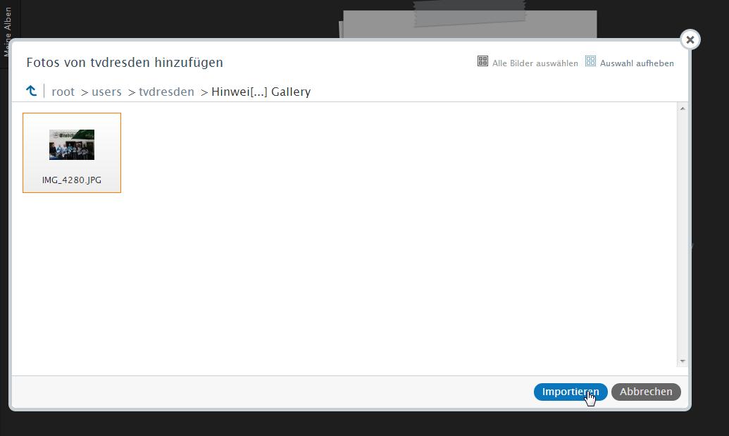Jetzt können die Bilder für das Album aus dem Dateimanager ausgewählt werden.