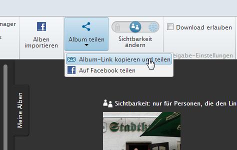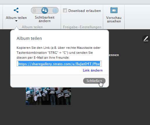 Über Link teilen kann die URL zur Share Gallery angezeigt werden.