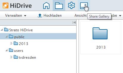 Nachdem die Bilder hochgeladen wurden, kann die Share Gallery eingerichtet werden. Dazu die Share Gallery in Strato HiDrive aufrufen.