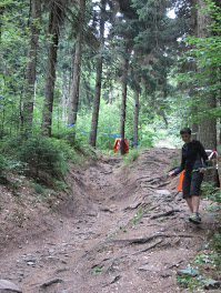 Ok, wir wussten welche Vorlieben Susi bei ihren Isomischungen hatte, wir wussten, dass es Torsten auch schon mal nach einem kernigen Mettbrötchen gelüstet, 3…2…1…und schon waren es nur noch 23 Stunden 59 Minuten und 59 Sekunden. Das Wetter war toll und schnell wurde deutlich, dass Susi auf einer von Torsten verschiedenen Strategie unterwegs war. Sie spulte die ersten Runden in einem unglaublichen Tempo runter, so dass Torsten schon nach 5 Runden feststellte: „Meiner Frau geht’s wohl richtig gut, was?!" Nach 8 Runden á 5,1 km fragte Torsten uns Betreuer: „Susi hat bestimmt schon 4 Minuten vor, oder?" Hm, leider konnten wir nur mit einem müden Lächeln antworten, denn es waren bestimmt schon 8 Minuten. Machte aber alles nichts, denn letztlich ist seine Taktik, gleichmäßig zu fahren, aber dafür länger als andere auf der Strecke zu bleiben, ja aufgegangen. Sein erster Turn war 8 Stunden!!!! In Worten: acht Stunden. Sorry, aber so lange habe ich noch nie am Stück auf einem bequemen Rennradsattel gesessen. Ok, Susi und Torsten rollten sich ein, das Betreuerteam hatte Zeit, sich auch mal die Strecke anzuschauen. Diese stellte sich als wirklich heftig heraus. Von Hochgeschwindigkeitsabfahrten über Steine bis steile Anstiege über stufige und technisch sehr anspruchsvolle Abfahrten war alles dabei. Das ist nicht nur anstrengend für die Muskulatur, sondern auch für den Kopf. Wir sahen öfter mal welche straucheln. Aber nicht umsonst ist es das härteste 24-Stunden-MTB-Rennen, was es in Deutschland gibt!!!