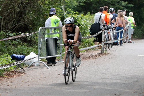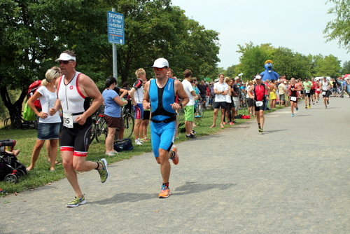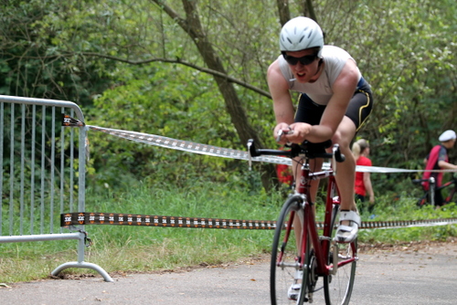 Eric finishte seinen ersten Olympischen Triathlon kurz vor mir und wartete im Ziel.