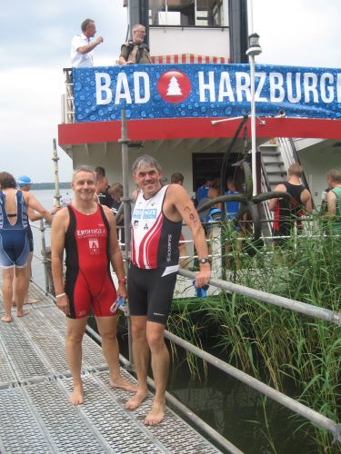 Erwähnenswert ist noch, dass Franzi Tiex Landesmeisterin Sachsen-Anhalt wurde, Thomas Röver 2. und 1. in seiner AK – das MTB-Training in der Dresdner Heide mit Susi und Torsten hat also nicht geschadet. In der Altersklasse M55 wäre ich Landesmeister Sachsen-Anhalt, wenn ich dann dafür startberechtigt gewesen wäre, der Geburtsort zählte leider nicht L. Im Gegensatz zu Sachsen (Koberbachtalsperre) gab es bei der Landesmeisterschaft auch eine Siegerehrung. Auch sonst war es ein sehr gut organisierter Triathlon. Wer sich nicht vor der langen Anreise scheut, dem sei diese Veranstaltung ausdrücklich empfohlen. Aber bitte rechtzeitig anmelden, es werden nur so viel Starter angenommen, wie auf einmal auf den Dampfer passen.