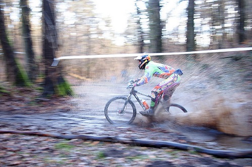 Dort empfing uns mitten im Wald der R.C.U mit einer Schnaps, -Bier und Kesksbar und einem sehr kreativ ins Unterholz gefrästen Singletrail. Der Rundkurs ließ unsere Herzen bereits bei der Erkundungsfahrt höher schlagen – nicht nur vor Anstrengung, sondern auch aus lauter Freude im herrlichen Morast spielen zu dürfen. Dreimal auf jeder Runde galt es einen schlammigen Bachlauf zu durchqueren. Mehrere Anstiege und Abfahrten verschiedenster Anforderungsstufen und lustige Hindernisse wie der „Limbo” im Bach und „2 Altschlauch-Recycling-Traumfänger“ versüßten die zu fahrenden acht Runden.