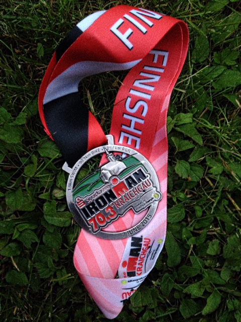 Zusammen mit Grahlo, Rajko und Nico vom TV Dresden hatte ich mir den IRONMAN 70.3 Kraichgau als erstes Saison Highlight ausgesucht, der vergangenes Wochenende ausgetragen wurde. Es sollte meine erste Mitteldistanz werden, die ich nach fast fünf Jahren in dem Sport angehen wollte! Es hatte eben auf den kürzeren Distanzen etwas länger gedauert mit dem Schwimmen, Radfahren und Laufen. Ich hatte anfangs keine konkrete Vorstellung darüber, was ich insbesondere vom Lauf erwarten könnte. Da wechselten die Gedanken von „wird schon laufen“, über „diese verfluchten Hügel“ bis hin zu „Nimm´s, wie´s kommt!“ Letzterer Ansatz hat sich als der beste herausgestellt. Aber von Anfang an: Zusammen mit Grahlo und unseren anfänglichen Betreuern Anita und Lars sind wir nach ausgiebigem Frühstück und mit reichlichem Zeitpuffer am Morgen des 7. Juni 2015 locker an den Hardtsee bei Bad Schönborn gefahren. Dort hatten Grahlo und ich bereits am Vorabend die Räder eingecheckt und uns grob mit dem Wettkampfgelände für das Schwimmen vertraut gemacht. Natürlich war ich mit meiner Schwimmschwäche bereits am Donnerstagabend zum Testschwimmen gestartet, um mich zu versichern, dass der See nicht zu tief, das Wasser nicht zu klar und die Wasserschlangen auf Rehakurs sind. Alles perfekt, kein Grund für Ausreden!