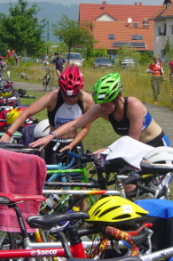• Aus dem Gerätebestand des Triathlonverein Dresden werden mehrere professionell anmutende Kleinwechselgärten aufgebaut. Damit wird ein reibungsarm paralleles, bzw. überschneidendes Vorbereiten und Durchführen der einzelnen Läufe ermöglicht.