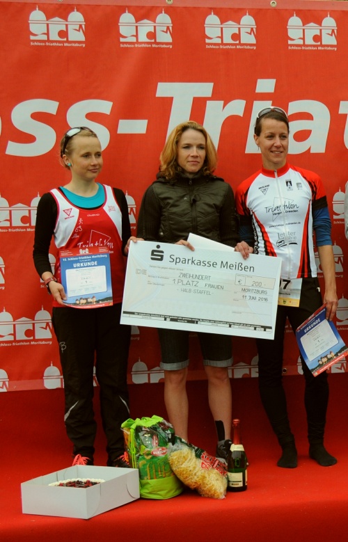 Bis zur Uraufführung am 11.06.2016 in Moritzburg mussten wir die Akteure noch einmal tauschen. So verließ uns erst die Läuferin und dann unfreiwillig die Starterin Jana für das Schwimmen durch einen Radsturz. An einen Start war nicht mehr zu denken. Es fand sich nach längerem Casting ein adäquates Team mit Konstanze Friedrich (TV Dresden), Katja Genauck (TV Dresden) und Anne Röhnert (DSC) zusammen.