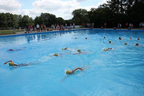 Der heutige Startschuss fiel Punkt 11.00h. Bei ca. 23 Grad Wassertemperatur habe ich mich angesichts der kurzen Schwimmstrecke dafür entschieden, nur im Einteiler zu starten. Sich aus dem Neoprenanzug herauszupellen, ist meiner Meinung nach reine Zeitverschwendung. Von Beginn an zog ich in Richtung Flussmitte, um von der maximalen Strömung zu profitieren. Ich fand gut in meinen Rhythmus und konnte in der Spitzengruppe das Wasser verlassen.