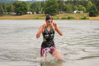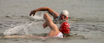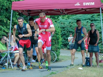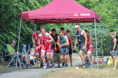 Und So begaben sich die Wettkämpfer nach ganz verschiedenen warm-up-Distanzen an Land oder im Wasser, wie gewohnt 2 Mal ins Rennen. Nicht das erste Mal, aber bisher seltener wurden die Rennen wie folgt durchgeführt: Lauf: 1,3km – Schwimmen: 500m – Lauf: 1,3km.
