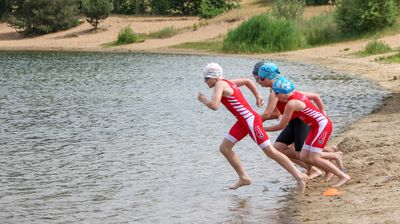 Die Kinder bis 11 Jahre taten es den Erwachsenen auf ihren Distanzen aber in üblicher Swim+Run-Manier gleich.