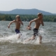 Dort herrschte bei unserer Ankunft schon reges Treiben und eine leicht angespannte Vorstartatmosphäre lag in der Luft. Nach einem kurzen Radcheck und einem noch kürzeren Einschwimmen reihte ich mich schon im Rolling Start ein. Geschwommen (ja, bei uns fand das Schwimmen statt) wurde eine große Runde im herrlich klaren und im Gegensatz zum Vortag ruhigen Zürichsee. Aufgrund der hohen Temperaturen der Wochen zuvor lag die Wassertemperatur deutlich über der Neoverbotsgrenze. Wir schwammen also ohne Neo, was mir aber ganz recht war. Das Schwimmen ging relativ unspektakulär vorüber und nach etwas über einer Stunde verließ ich als 11. Frau das Wasser.