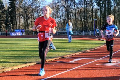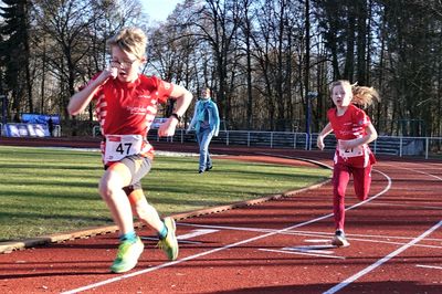 Für unsere 1 & 2,5km Läufer hieß es erstmal Runden im Stadion rennen, bevor es dann auf