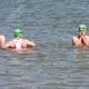 Vor dem Start trafen wir Marleen und Clara, die wir bei ihrem Wettkampf anfeuerten. Geschwommen wurde in einem Becken, so dass die Zuschauer zusehen konnten. Für jede Gruppe gab es einen Vorstart, wo die Sportler zusammen gesammelt wurden. Das Ziel befand sich mit einem Zielbogen auf einer Tribüne, auf welcher später auch die Siegerehrung stattfand.