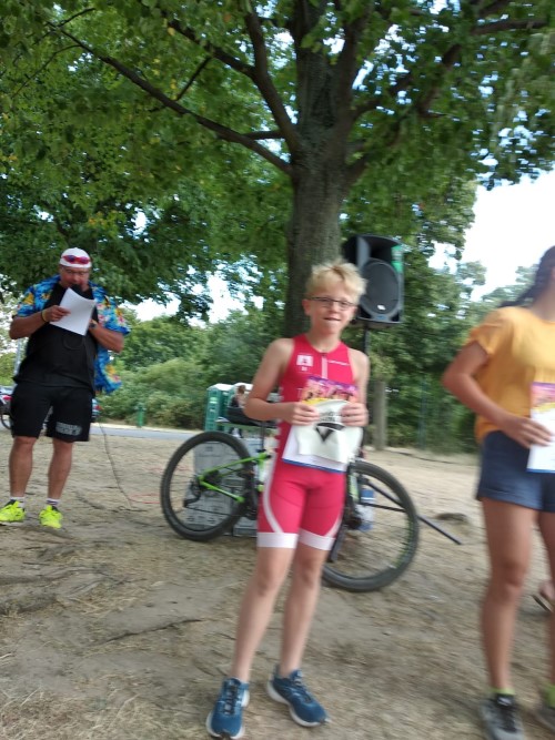 Ich war sehr aufgeregt, das Schwimmen lief gut, obwohl ich sehr viel Wasser geschluckt hatte. Der Wechsel war ganz gut und mir war nicht so übel wie sonst. Das Laufen verlief gut, ich bin an Hannah dran geblieben. Leider habe ich meine große Chance verpasst Hannah zu überholen. Das war aber nicht schlimm, da ich 3. geworden bin.