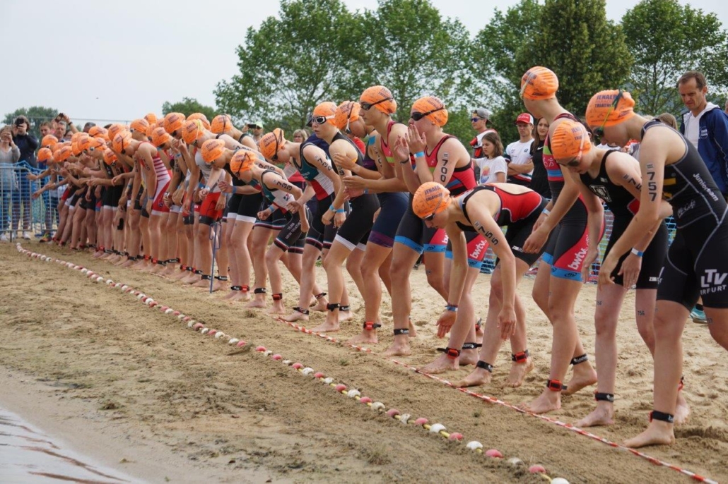 Der erste Triathlon, der Serie, fand in Jena statt. Die Besonderheit war, dass es ein Supersprint Triathlon war, das heißt zwei kleine Triathlons unmittelbar hintereinander und damit war eine deutlich höhere Geschwindigkeit als sonst gefordert. Wir waren super darauf vorbereitet und am Samstag ging es dann für Clara mit den anderen sächsischen Nominierten erst einmal zur Streckenbesichtigung. Lydia war währenddessen noch beim Schwimmwettkampf in Wittenberg und kam deshalb erst am nächsten Morgen. Nach langem Warten und einer kurzen Erwärmung ging es dann endlich los. Ab „in den Überlebenskampf“, wie Lydia nach dem Wettkampf zum Schwimmen sagte.