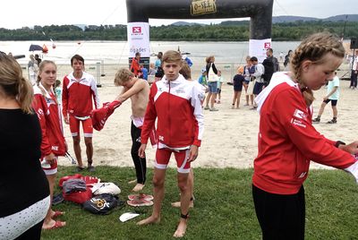 Till, Ole, Heléna, Finn, Stan und Naja starteten ein paar Minuten nach ihnen. Zwei Minuten später stand auch Ani am Start, und los ging es mit dem Schwimmen.