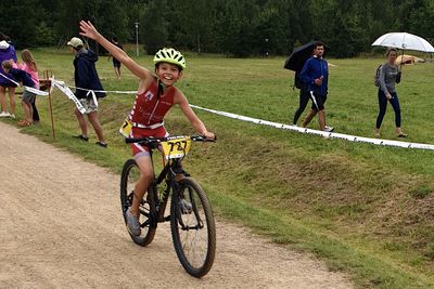 Nach ihr kamen Selma, Tim und Lasse dran. Nach den 200 Meter Schwimmen ging es ab aufs Rad.