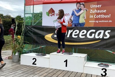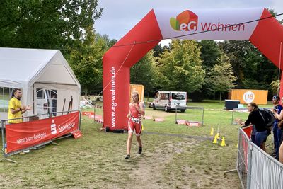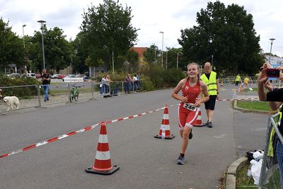 Im gleichen Feld startete auch Marleen. Marleen hat mit einer tollen Schwimmzeit überzeugt und konnte sich gegen die starke Konkurrenz aus Berlin mit Platz 4 belohnen. Als jüngerer Jahrgang in der Jugend A ist das ein Topergebnis. Nach dem Zieleinlauf gab es Verwirrung, da eine Wettkämpferin eine Runde zu wenig Rad gefahren war. Dem Einspruch wurde stattgegeben.