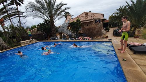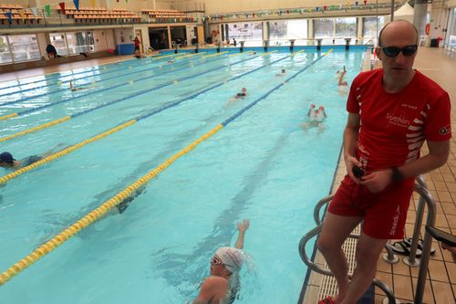 Auch das Schwimmen durfte im Trainingslager nicht fehlen. Das Schwimmen war stets besonders und tat manchmal auch weh, weil die Bahnen etwas eng waren und so der ein oder andere (aus Versehen) gegen eine andere Hand oder gegen die Leine geschlagen hat. Außerdem war das Wasser trüb, dafür aber warm. Wir mussten immer (manchmal auch in der Früh) mit dem Rad ca. 2,5 km bis zur Schwimmhalle hinfahren. Das Verständigen in der Schwimmhalle klappte mit Jörgs Spanischkenntnissen gut. So erlaubten die Badeverantwortlichen, dass wir unsere Räder in die Halle stellen durften. Die maximale Mietzeit für die Bahnen betrug dafür leider nur 1 Stunde. Dennoch haben wir die Schwimmzeiten gut genutzt, um uns zu verbessern.