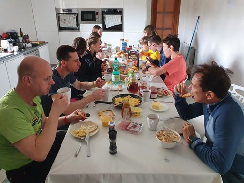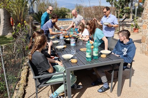 Wer viel Sport macht, hat auch viel Hunger. Für unsere Verpflegung hatten wir lieberweise ein „Kochtrio“. Das waren die Eltern und Betreuer René, André und J(e)an. Es gab jeden Tag verschiedene und ausgewogene Gerichte. Um den Grundbedarf der ersten Tage abzudecken, sind wir nach unserer Ankunft auf Malle gleich in einen Lidl einkaufen gegangen. Dabei mussten wir in den 20 Minuten bis zum Geschäftsschluss schnell noch die Namen der ganzen Lebensmittel übersetzen. Dank einer guten Einkaufsvorbereitung und Arbeitsteilung kamen wir dennoch mit drei vollen Einkaufswagen aus dem Lidl. Mit der besten denkbaren Kochcrew und dem leckersten Essen konnten wir schlussendlich ein erfolgreiches Trainingslager absolvieren.