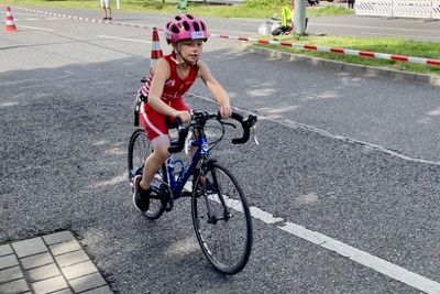 Mit einer kleinen Verspätung, hieß es für mich 50 Meter Schwimmen, 1 Kilometer Radfahren und 200 Meter Laufen. Ich hatte mich entschieden, erstmal zu kraulen. Mir wurde gesagt, dass man da schneller ist. Hat ganz gut geklappt. Im Wechselgarten habe ich leider viel Zeit verloren, da mein Helm nicht zugehen wollte. Aber am Ende hat es noch mit einem Zielsprint für den ersten Platz gereicht.