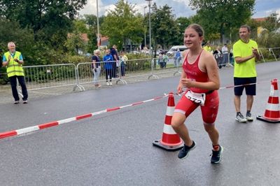 Beide haben sich auf der Radstrecke wiedergetroffen. Leider hatte Till Pech, da seine Schaltung nicht wollte wie er. Aber er hat fleißig in die Pedalen getreten. Ole musste leider mit Seitenstechen kämpfen und konnte beim Laufen nicht richtig Gas geben. Aber alles in allem – trotz der nicht eingeplanten Dinge – haben es beide in die Top 10 geschafft.