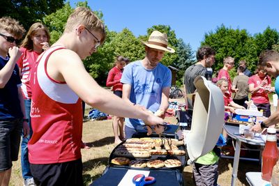 Nach dem sportlichen Teil wurde gegessen und in einer netten, geselligen Atmosphäre geschwatzt. Es gab Bratwürste und Käse vom Grill. Das Essenangebot wurde noch um selbstgebackenen Kuchen erweitert. Am Ende holte sich jeder Teilnehmende seinen wohlverdienten Applaus ab und die Siegerinnen und Sieger wurden geehrt.