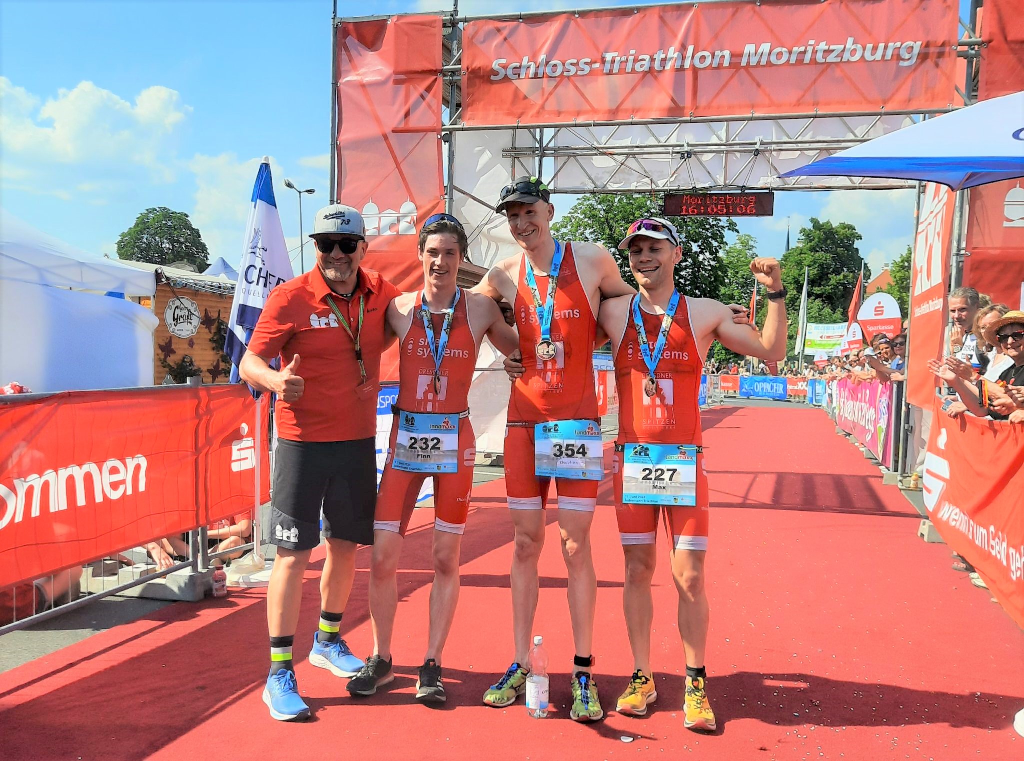 Glückwunsch an Anna, die die Frauenkonkurrenz auf der Sprintdistanz für sich entscheiden konnte. Glückwunsch an Max, der das Sprintpodium mit Finn vervollständigt hat. Und Glückwunsch auch an alle Finisher, die dem heißen Wetter getrotzt und das Moritzburgwochenende gerockt haben. Und zum Schluss schließe ich mich Christians Dank an die Helferinnen und Helfer und die stimmungsvolle Anfeuerung auf der Strecke an.