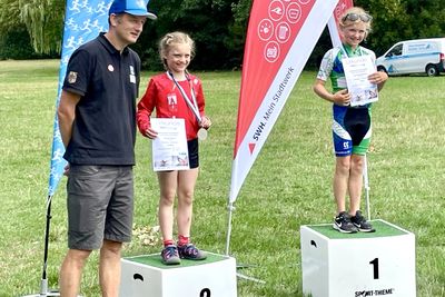 So war es für alle ein erfolgreicher Wettkampf – aber nein, es ging noch weiter. Die Veranstalter hatten die grandiose Idee, nach dem Swim and Run noch ein Fahrradrennen für alle Teilnehmer zu machen. So starteten Marleen und Hannah hier erneut. Charlotte durfte sich hier leider nicht beteiligen, da die Kleinen von diesem Startrecht ausgeschlossen waren. Marleen konnte sich hier in die erste Radgruppe setzen und in einer Gruppe voller Männer sehr gut mitmischen und die Gruppe auf Trab halten. Am Ende gewann sie hier die Frauenwertung. Hannah bildete mit einer anderen Athletin die zweite Rad-„Gruppe“. Mit hohen Geschwindigkeiten verfolgten sie die Führenden, sodass Hannah sich am Ende auf Platz 2 hinter Marleen setzten konnte.