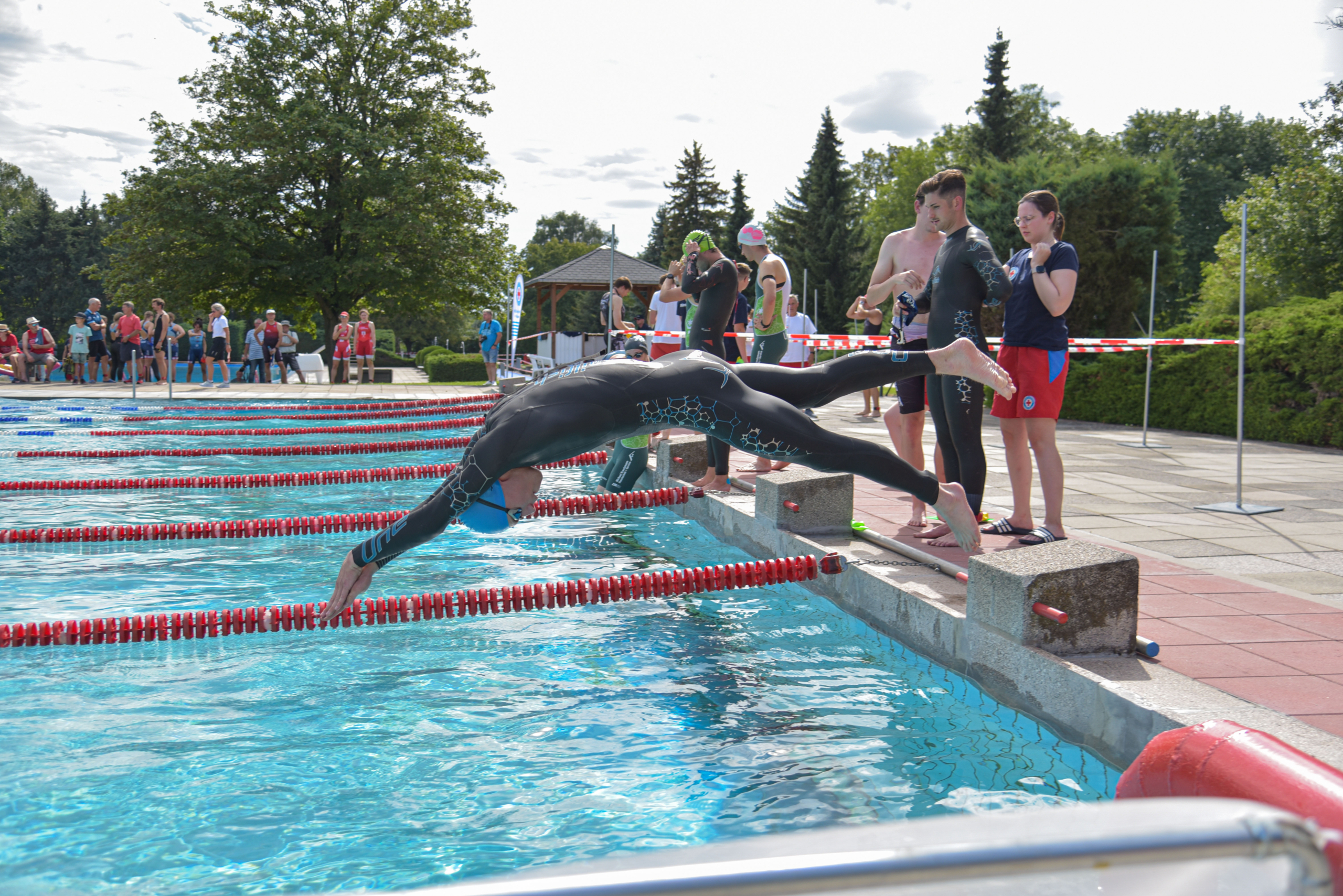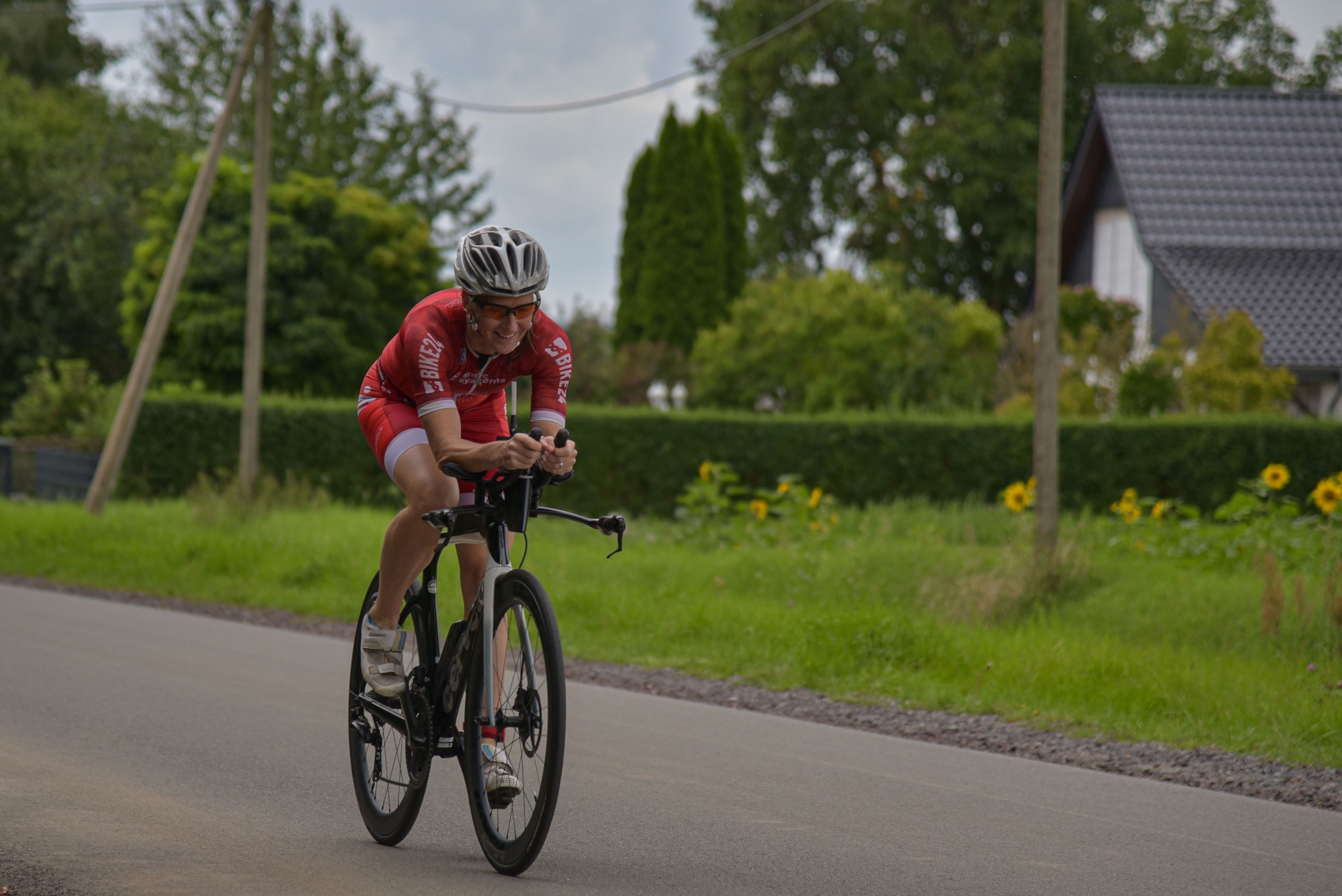 Die Wettkampfeinweisung meiner Meinung nach etwas spät (10min vor Start der Männer – so lange brauchen manche von uns für 200m einschwimmen…), aber die Stimmung an der Strecke und die Anzahl an Helfern sowie die Strecke selbst waren wirklich prima. In jedem Dorf, durch das man gefahren oder gelaufen ist, standen oder saßen Familien und haben angefeuert. Echt cool.