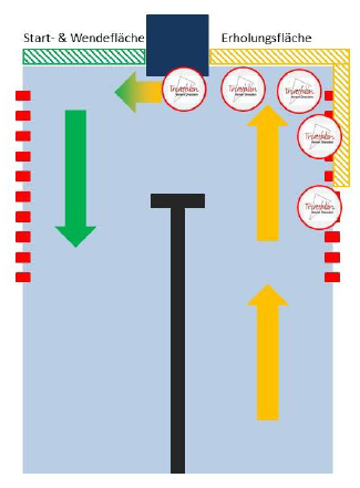 - Längere Pausen werden außerhalb des Beckens verbracht.