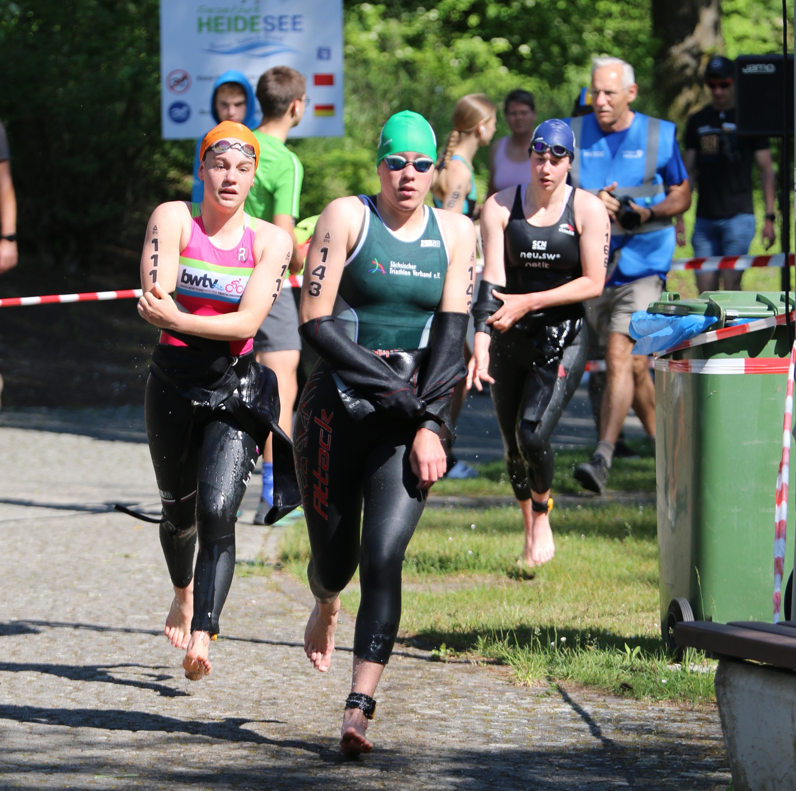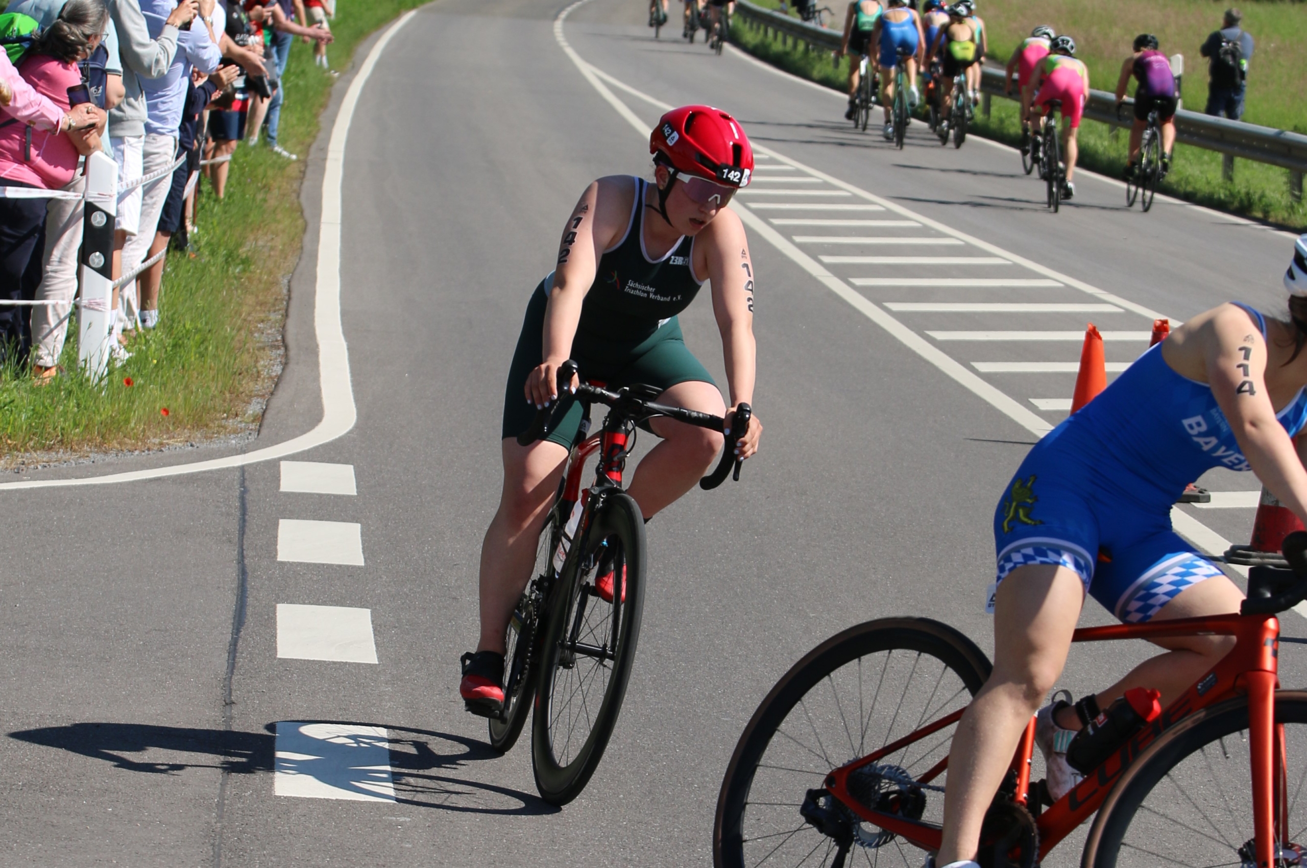 Hannah kam kurz hinter mir aus dem Wasser und Wechselte schnell. Leider verpasste sie den Anschluss an die Radgruppe. Hannah machte einen guten Lauf.