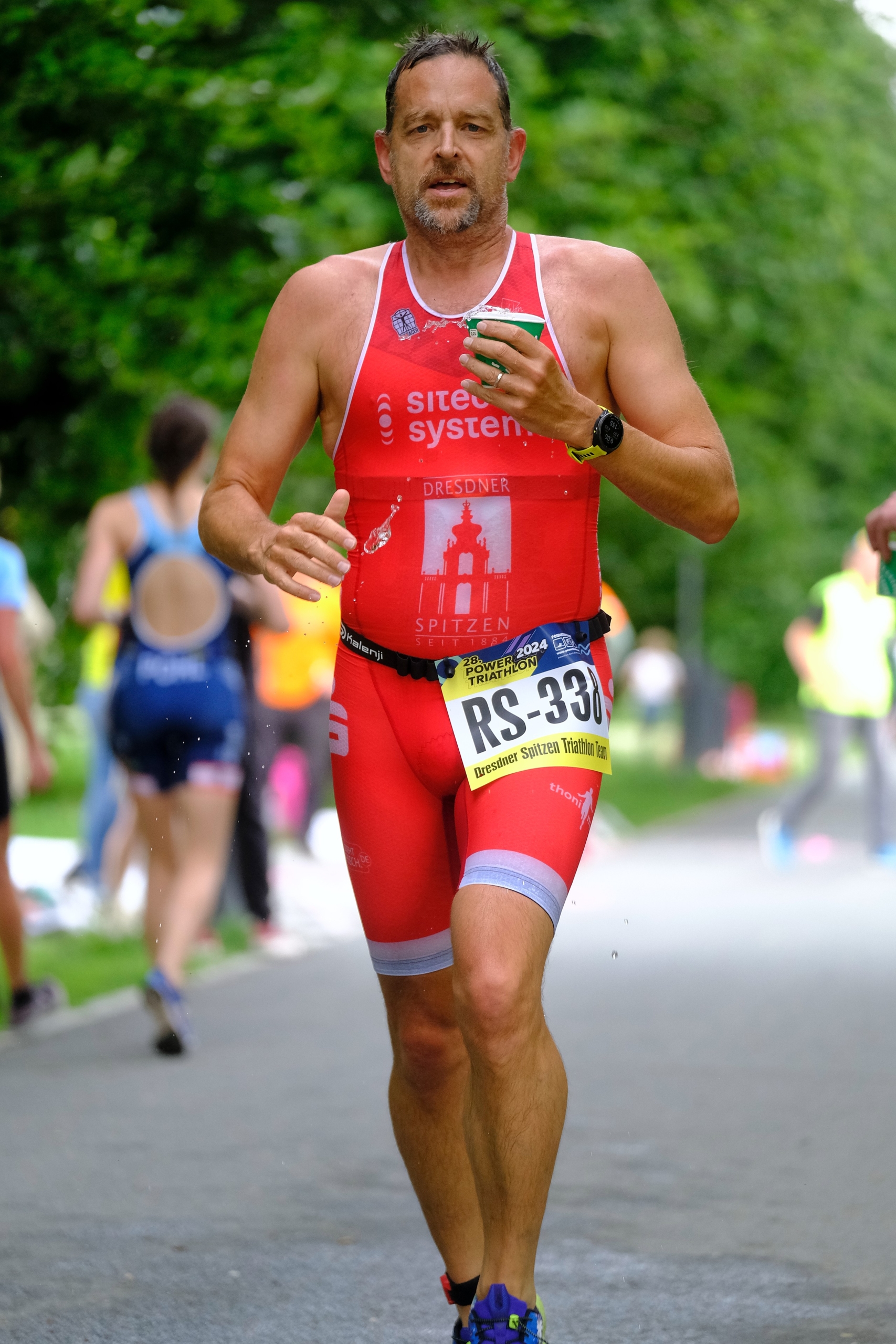 Begonnen wurde mit dem Start der Männer mit Christian Jentzsch, Dominik Hüttig, Tim Wüstefeld und Finn Eschler. Trotz zufälliger Bahnverteilung schwammen Christian, Dominik und Finn zusammen auf einer Bahn. Aufgrund der schlechten Wetteraussichten wurde die Laufstrecke am Samstag zu 5 mal einer 1 km langen Runde im Hofwiesenpark abgeändert. Auf der flachen Strecke konnten die Carbon-Schuhe super ihre Wirkung entfalten und die einen ständig umgebenden anderen Sportler spornten zum noch schnelleren Laufen an, sodass Finn den ersten Teil des Wettbewerbes mit einem Vorsprung von 30 s gewinnen konnte, Christian sicherte sich Platz 9, Dominik wurde 25. und Tim lief auf den 32. Platz.