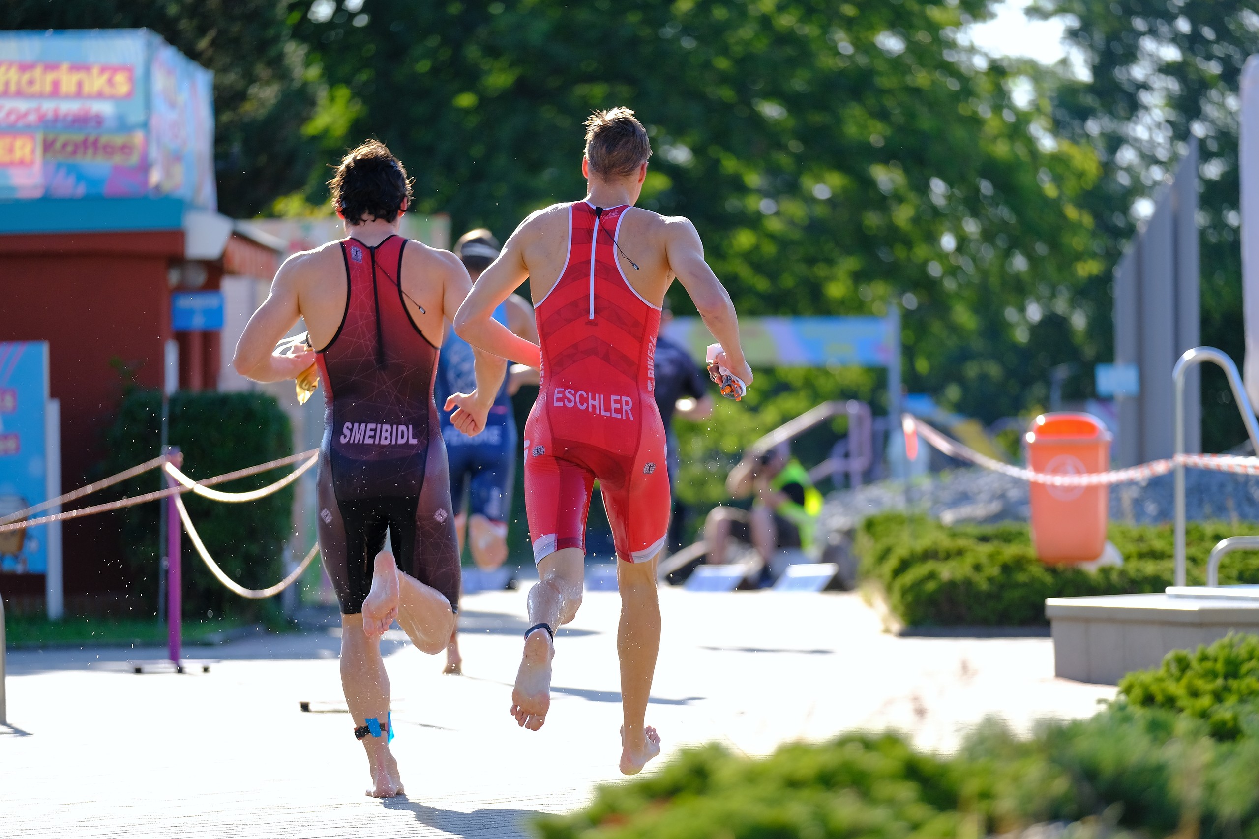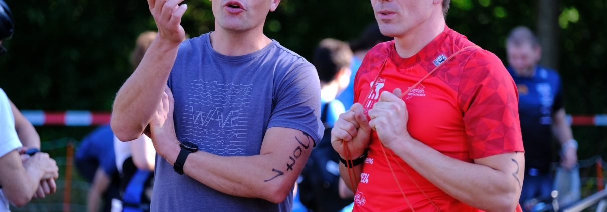 Fabio, der erste Starter bei den Masters, ging es beim Schwimmen etwas ruhiger an, denn er wusste, er würde durch seinen schnellen Rad-Lauf-Wechsel viele Sekunden wieder gut machen. Und tatsächlich…durch seinen blitzschnellen Wechsel, ohne die Schuhe zu wechseln, machte er wichtige Sekunden gut. Nebenbei angemerkt, sein Radfahren in Laufschuhen kann sich sehen lassen. Das Wettkampfformat macht es für den Betreuer zu keinem leichten Spiel den Überblick zu behalten und spätestens beim Wechsel auf die zweite Person, war dem Betreuer nicht mehr klar, an welcher Position welche Staffel lag. Was allerdings auffiel war der übermotivierte Athlet (der betreffende Athlet weiß Bescheid), der mehr als gefordert ablieferte. In dem Fall war es allerdings irrelevant, da es (sehr wahrscheinlich) nichts an dem Ergebnis geändert hätte. Wir merken uns: Dies ist stets zu vermeiden und nur wenn absehbar ist, dass es keinen Einfluss auf das Ergebnis hat (es wird nie absehbar sein), können Zusatzrunden absolviert werden.