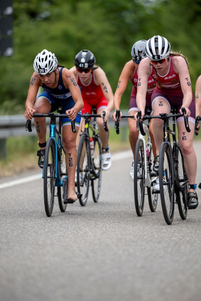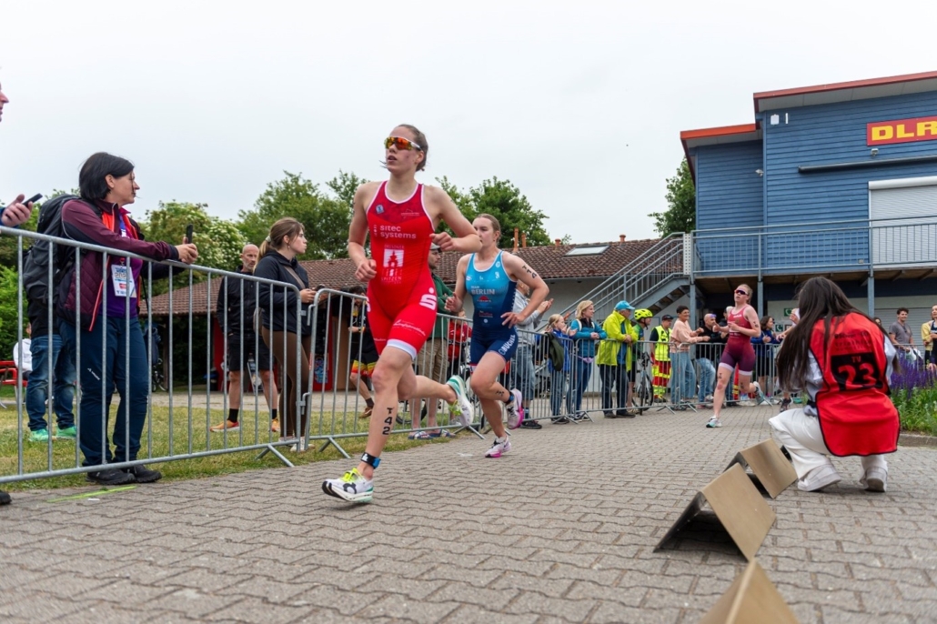 Pauline spielte ihre Schwimmstärke aus und konnte sich eine gute Ausgangsposition sichern. Naja kam kurze Zeit später aus dem Wasser und startete die Aufholjagd auf dem Rad und beim Laufen. Das gelang ihr souverän, sodass sie das 2. Paar in hoffnungsvoller Ausgangslage in die Spur schickte. Pauline beendete ihr Rennen ebenfalls, kam aber in dieser Konstellation nicht in die Wertung. Das hieß im Umkehrschluss aber auch, dass Lena und Caro zusammenbleiben mussten. Die beiden kennen sich sehr gut und haben bereits viele Trainingsstunden gemeinsam absolviert. Da weiß die eine, was die andere denkt. Leider war das nötige Quäntchen Glück an diesem Tag nicht auf unserer Seite und mehrere kleine „Fehler“ summierten sich, sodass wir am Ende nicht über einen 13. Platz hinauskamen. Dennoch konnten wir viele Dinge aus dem Rennen lernen, die uns für die kommenden Wettkämpfe nützlich sein werden.