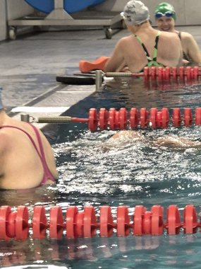 Drums alive, Aquafitness und Sauna fungierten als vergnügliche Abwechslungen zum eigentlichen Zweck – dem Schwimmcamp. Start frei um 7 Uhr am Beckenrand.