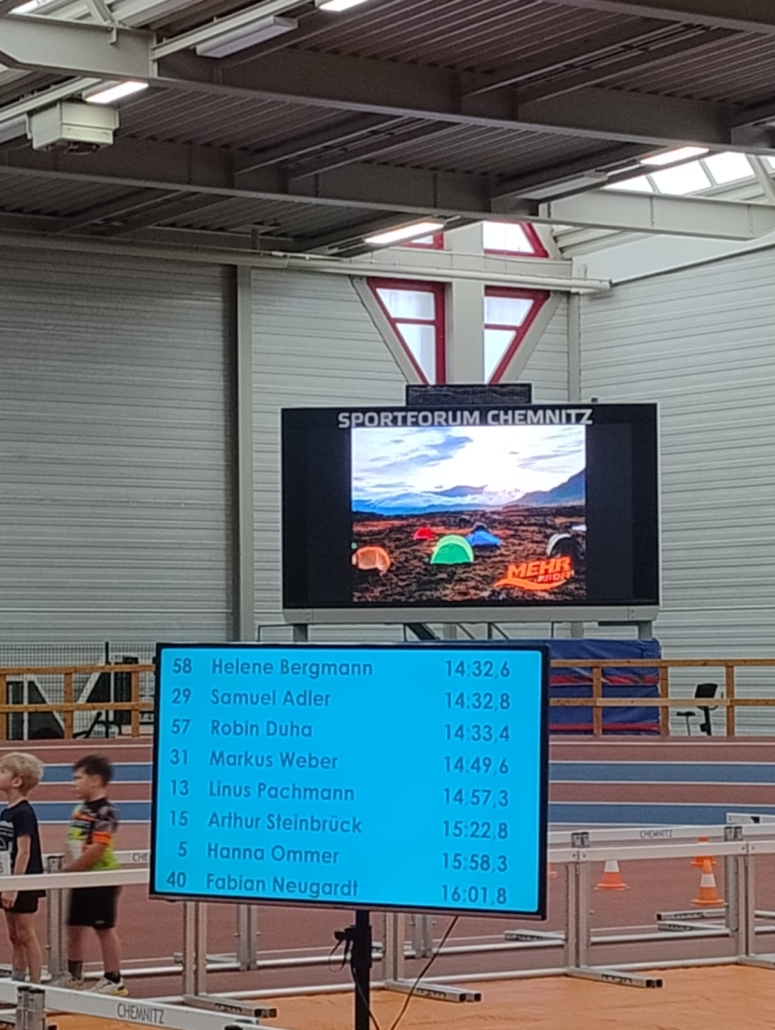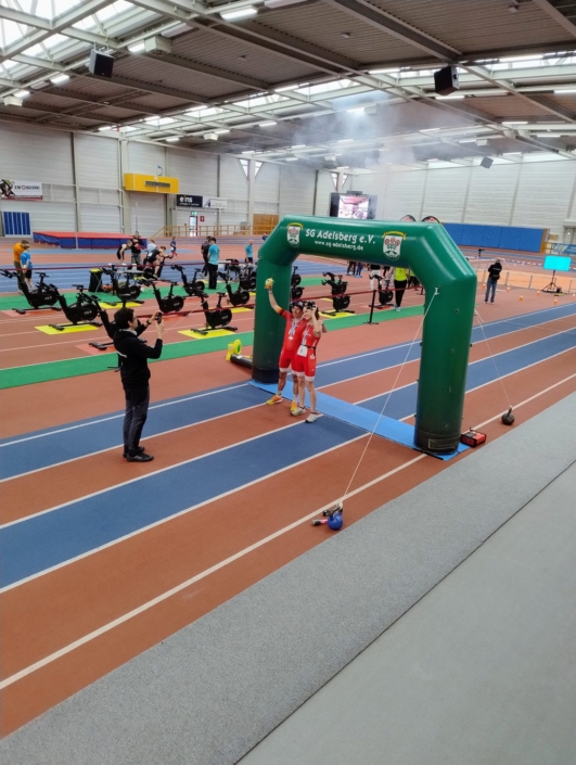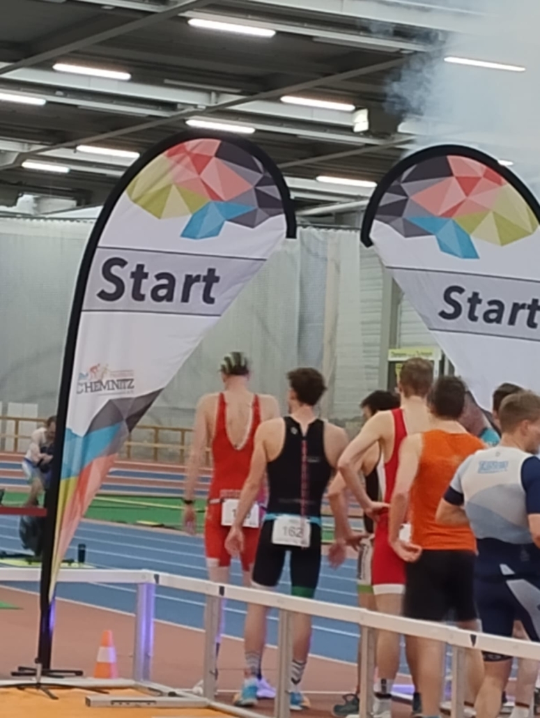 Nach einer kurzen Pause, die wir zum Transfer nutzten, ging es um 10:30 in der Laufhalle des Sportforums weiter mit den zwei verbleibenden Disziplinen des Dreisportes.