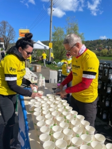 Gemeinsam reichten wir unzählige Becher Wasser und Iso-Getränke an die vorbeiziehenden Läuferinnen und Läufer, die dankbar jede Erfrischung annahmen. Viele blieben für ein kurzes Wort stehen, manche für ein Lächeln, andere für ein herzliches „Danke!“. Die Stimmung war durchweg großartig – eine Mischung aus sportlicher Anspannung, Erleichterung, Teamgeist und echter Freude am gemeinsamen Erlebnis.