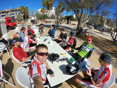 Die bisher schönste Radtour führte uns bei besten Bedingungen einmal über die Insel bis nach Palma. "Palma, Palma, Palma de Mallorca!" Prima Ohrwurm, gern geschehen! Wie im Lied besungen, ist das Städtchen durchaus nett anzuschauen. Bis zum Ballermann hat die Runde zum Unmut einiger Mitstreiter jedoch nicht gereicht. Statt Kaltgetränke mit Ulle aus Eimern reichte man uns deshalb Cappuccinos aus Tassen. Aus Tassen! Wie konservativ. Solche Pausen werden von unserem selbsteingeflogenen Kräuterexperten Martin alias Mirakulix genutzt, die Trikottaschen randvoll mit allerlei Grünzeug vom Wegesrand zu füllen. Zuhause angekommen wird das Ganze mit heißem Wasser aufgebrüht und während eines speziellen Tanzes um die Feuerkochstelle abgeschmeckt. Sagen wir so, es riecht wie eine Mischung aus Krankenhaus und Schullandheim und schmeckt sehr "gesund", aber der weltbeste Triathlonverein vertraut seinen Profis.