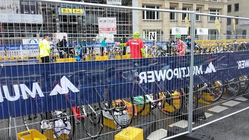 Auf der Laufstrecke wollte ich es trotz allem Pech, oder gerade deswegen jetzt richtig krachen lassen. Ab in die Schuhe und dann laufen bis der Zielstrick da ist. Ich kam ganz gut in Tritt und flog über die Strecke. Mein Ziel war es jetzt mich wirklich bis auf das letzte Quäntchen auszuquetschen. Die 10km waren jedoch sehr lang und ein permanenter Kampf mit mir selbst. Ab Kilometer 8 waren die Beine dann wirklich extrem schwer, doch gerade dort wurde die Stimmung immer besser. Je näher man dem Ziel kam, desto mehr Menschen standen an der Strecke. Die letzten Meter sind rückblickend sehr schwer zu beschreiben, Gefühlschaos trifft es glaube ich ganz gut. Einerseits enttäuscht durch den Defekt, andererseits absolut begeistert von der Atmosphäre und ganz nebenbei einfach auch völlig am Ende.