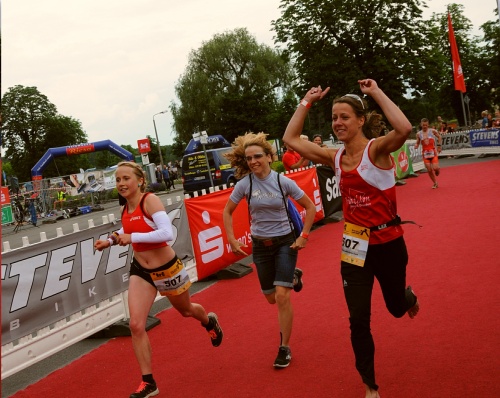 Als Dreiergespann läuteten wir mit einem Sprint zum Zielbogen den Schlussakkord ein. Die Freude war groß als der Sprecher Andreas Claus aussprach was wir vermuteten, die Trihaselnüsschen haben die Staffel der Frauen gewonnen.