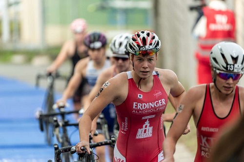 Im zweiten Lauf trat Anna Heyder im roten Einteiler an, die erst am Donnerstag das finale „Go“ für ihren Einsatz bekommen hatte. Ursächlich war ein Radsturz unser Dänischen Athletin Anna Harbo, die damit für das Rennen in Saarbrücken ausfiel. Als Teamleiter bin ich immer super froh, wenn ich solche Backup-Varianten zur Verfügung habe. Anna machte ein starkes Rennen, insbesondere mit ihrer Leistung beim Radfahren kann sie sehr zufrieden sein. Mit Platz 10 brachte sie wertvolle Wertungspunkte für das Team ein.