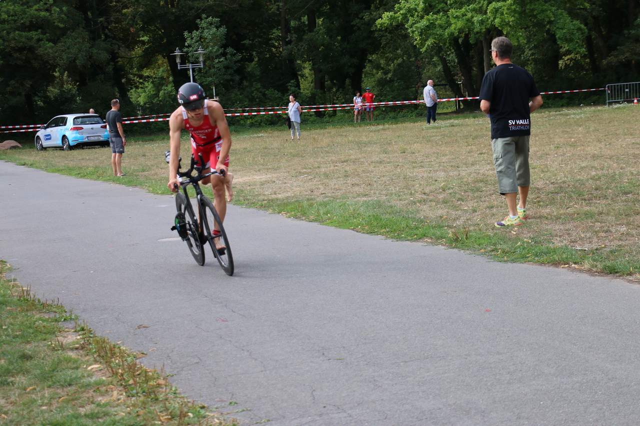 Die Regionalligasaison geht nun in die finale Phase. Nach einem rundum gelungenen Wettkampf in Halle geht es Mitte September in Cottbus beim letzten Rennen im Team-Relay noch einmal richtig zur Sache. Gleichzeitig bedeutet das auch, dass Halle für diese Saison das letzte Einzelrennen der Triathlon Regionalliga Ost war. Die Einzelwertung ergibt sich durch die erzielten Platzierungen (je besser desto mehr Punkte) der Rennen in Gera, Leipzig, Havelberg und Halle. Konkret bekommt der Sieger bei den Männern zum Beispiel so viele Punkte, wie maximal Athleten an den Start gehen können (kleine Matheübung: Anzahl der Mannschaften * 5 Starter). Die Punkte werden in der Einzelwertung addiert („+“ rechnen). Um die Einzelwertung zu gewinnen empfiehlt es sich also zum einen möglichst weit vorne in einem Rennen anzukommen und zum anderen an allen Rennen teilzunehmen.