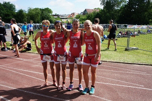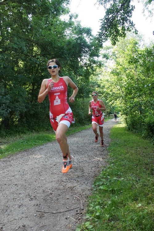 Astrid hielt sich bis zum Ende des Radparts in der Führungsgruppe. Louise konnte mit ihrer kleinen Gruppe auf eine größere Verfolgergruppe auffahren und somit als 18. vom Rad steigen. Jana und Pauline fuhren zu zweit den größeren Gruppen hinterher und versuchten den Abstand nicht größer werden zu lassen. Mit 1 Minute Abstand zur Verfolgergruppen begannen sie schließlich den Lauf. Im Gleichschritt konnten sie Platz um Platz gut machen und sich so von Platz 27 und 28 auf Platz 10 und 11 vorarbeiten. Auch Louise konnte noch einige Plätze gut machen und beendete das Rennen als Teambeste auf dem 9. Platz. Astrid kam als 20. ins Ziel.