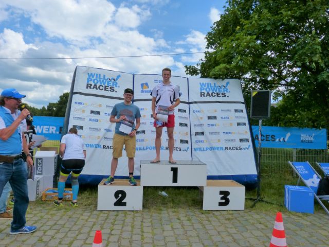 Fix gewechselt und ab aufs Rad. Nach dem Schwimmen war das Ziel recht klar: So schnell es geht vor auf Position Eins fahren. Die Beine fühlten sich gut an und ich machte von Beginn an Druck. Nach ca. 4km war es dann soweit, zum ersten Mal bei einem Triathlon überhaupt konnte ich „Führungsluft“ schnuppern. Zugleich war es ein ordentlicher Motivationsschub diese Position nicht mehr herzugeben. Bis zum Ende des Radfahrens konnte ich den Vorsprung weiter ausbauen und mit einem guten Polster in den finalen Lauf gehen.