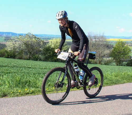 5 Weiber, 4 Mountainbikes, 100km und 2.000 Höhenmeter. Wie jetzt?!? Da fehlt ein MTB? Ja, klar, eine >arme Sau< muss laufen. Ob und wie die >arme Sau< abgewechselt wird obliegt der Mannschaft. Unser Team >Ein Weib kommt selten allein ... zur Toilette< bestand aus der süßen Jule, der lebensfreudigen Marina, der meisterlichen Katja, der feurigen Franzi und der lustigen Jana. Frierend und aufgeregt standen wir an der Startlinie. Das erste Team fehlte, das zweite startete und dann um 7:32 Uhr kamen schon wir. Die lebenslustige Marina lief als erstes. Die Strecke wird bis kurz vorm Start geheim gehalten und ist nicht gesperrt. Es gilt die allgegenwärtige STVO. An jeder Kreuzung suchen wir nun nach den kleinen gelben Pfeilen, die uns den Weg weisen. Ist keiner zu sehen, heißt es der Hauptstraße zu folgen. Nach 10 Minuten radelt uns ein aufgeregter Mann in gelber Warnweste hinterher: Wir sind falsch! Da fehlt ein Pfeil! Waaaaas für ein toller Start. Es dauerte eine gefühlte Ewigkeit bis wir wieder die Führugsposition erreicht hatten.