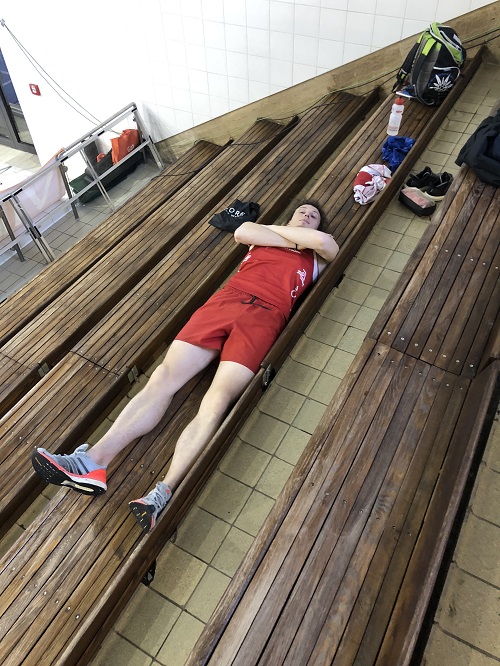 Gestartet wurde in drei Wellen über jeweils 275 m Schwimmen, 5 km Radfahren auf dem Fitnessbike und anschließend 1,5 km auf dem Laufband. Da wurde schon ordentlich Ballett gemacht, aber was sich wohl als kräftezehrendste Herausforderung an diesem Tag herausstellte war das ununterbrochene zufächeln von Frischluft für die aktiven Athleten… So war zumindestens unser erstes Fazit als wir uns am Sonntagmorgen alle etwas verkrampft aus dem Bett hievten.