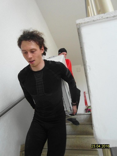 Nach einer kurzen schmerzlosen Ansage folgten Fugi nebst Lebensgefährtin Katrin, Max, Marvin, Danny, Marco und die Vereinsfreunde Jenser und Zaisi unserer Einladung zum Umzug. Wie es sich gehört, machte der harte Kern eine ordentliche Koppeleinheit daraus: Max, Marvin und Danny fuhren -über einige ungewollte bergige Umwege- mit dem Rad nach Paulsdorf, räumten ca. vier Stunden um (Stabilisationstraining!) und fuhren dann wieder per Rad zurück.